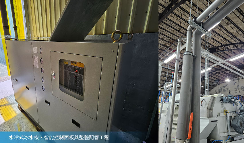 冰水機與密閉冷卻水塔運轉穩定,冷卻溫度一致,品質波動降至最低。 |