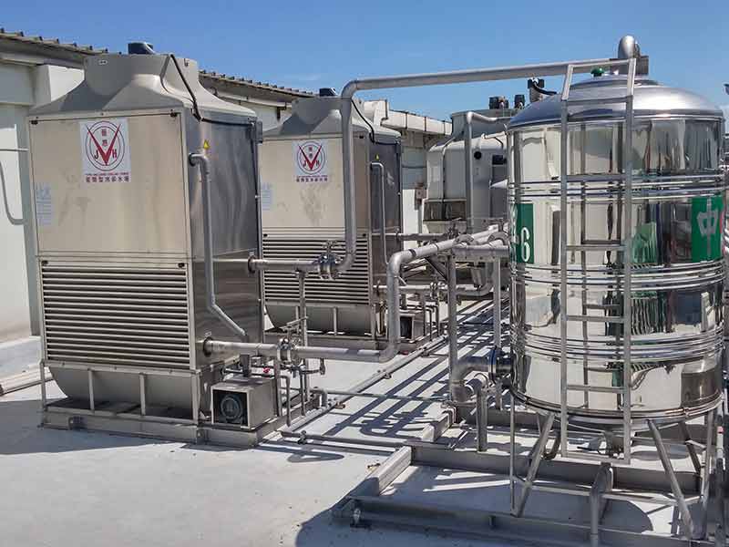 國內化妝品瓶罐類生產廠商,二廠射出設備使用,共計20台射出機台,舊有使用傳統冷卻水塔,長期受到水垢困擾,經由執行總監接洽導入密閉冷卻水塔冷卻,水垢問題不在影響生產。 |