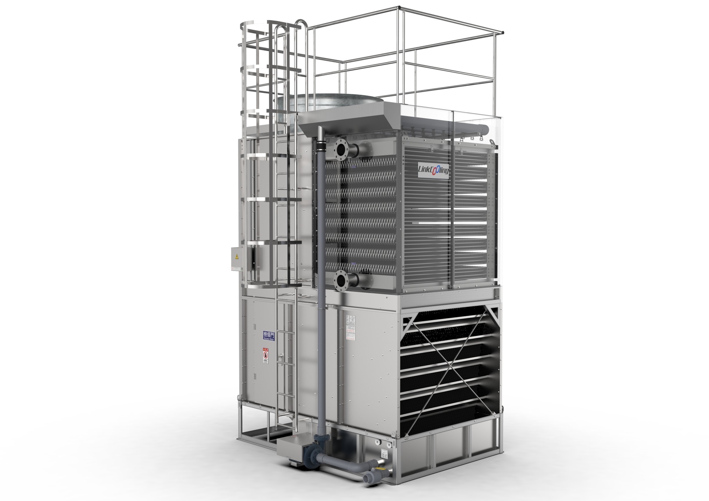 HCT系列擁有寬敞的內部空間,方便人員後續維修清潔,搭配L型擋水簾有效防止水花在冷卻水塔內部空間飛濺等。